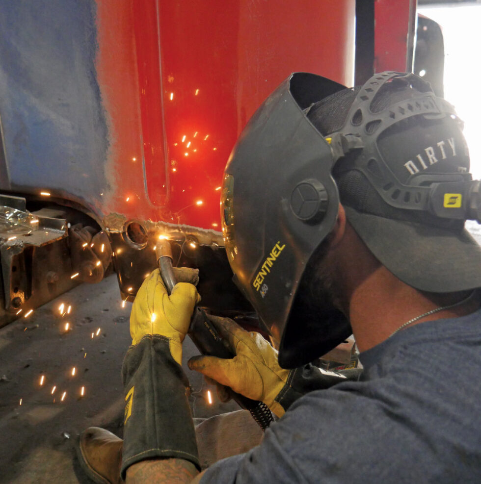 - The AMD outer cab corner was stitched in carefully to control heat and avoid warpage.