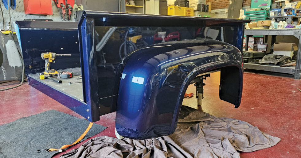 - The bed assembled with cross sills (PN 716-4553-3), bedsides (PN 721-4553), front panel (PN 715-4551), rear fenders (PN 80-4553), and a fender bolt set (PN 15783). Minor slotting and tweaks dialed in the fit.