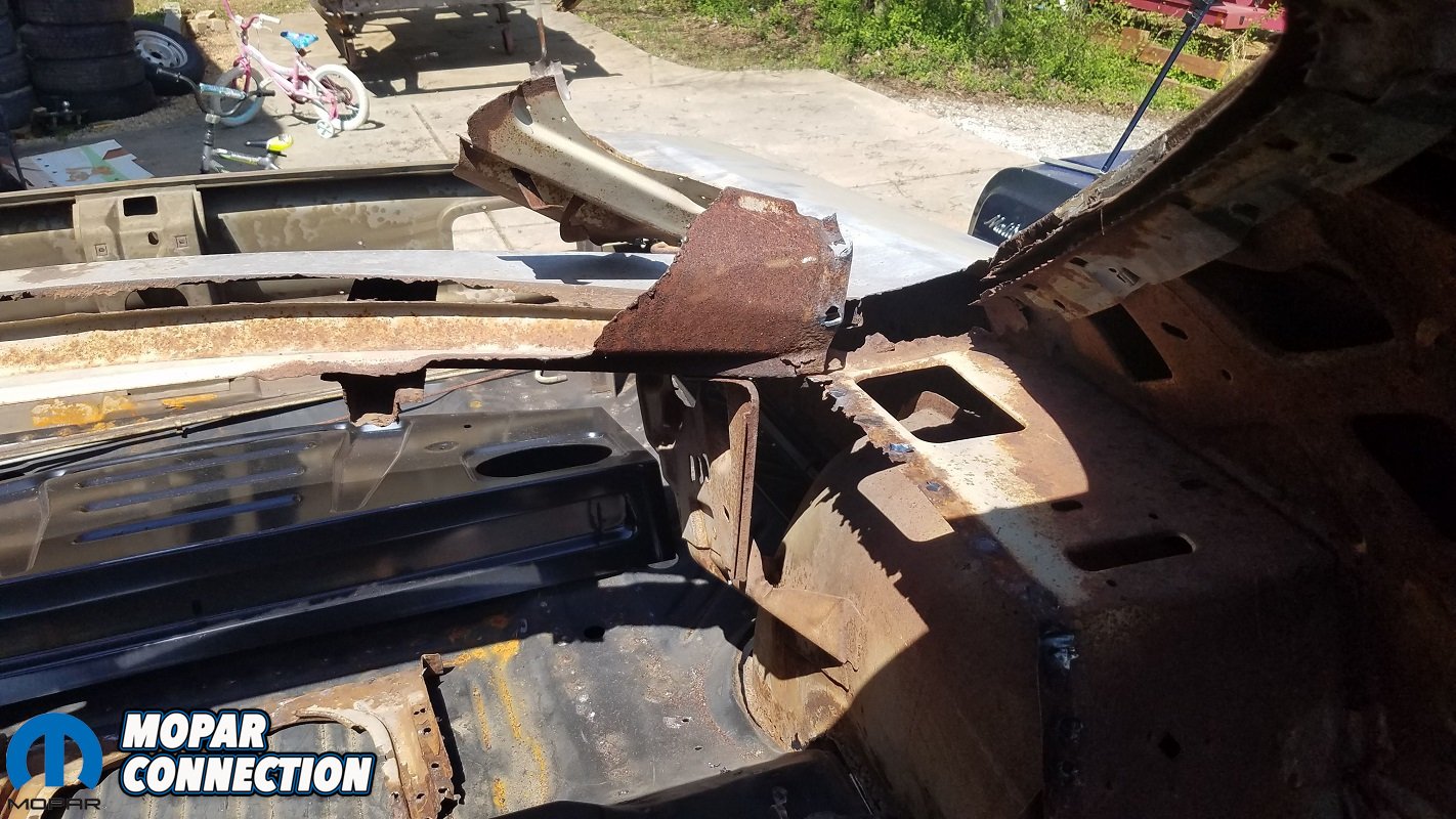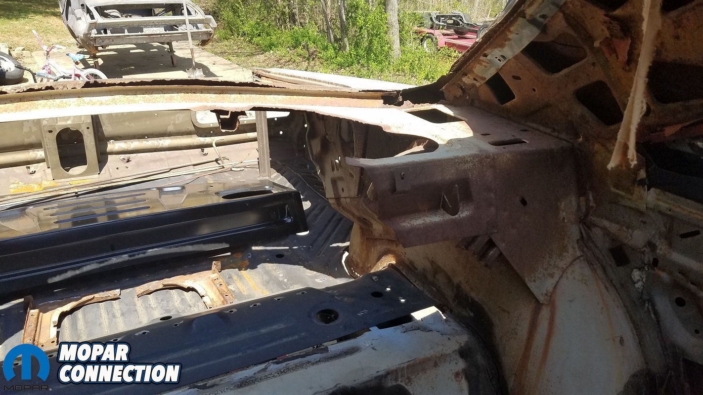 With those out of the way, the final component needed to tie the back half of the car together was a tail panel. Because the 1970 Coronet body style is a one-year-only model, several parts like this tail panel have never been available in aftermarket form. Therefore, restorers’ only options are to fix existing pieces or find cut-off sections from other cars.