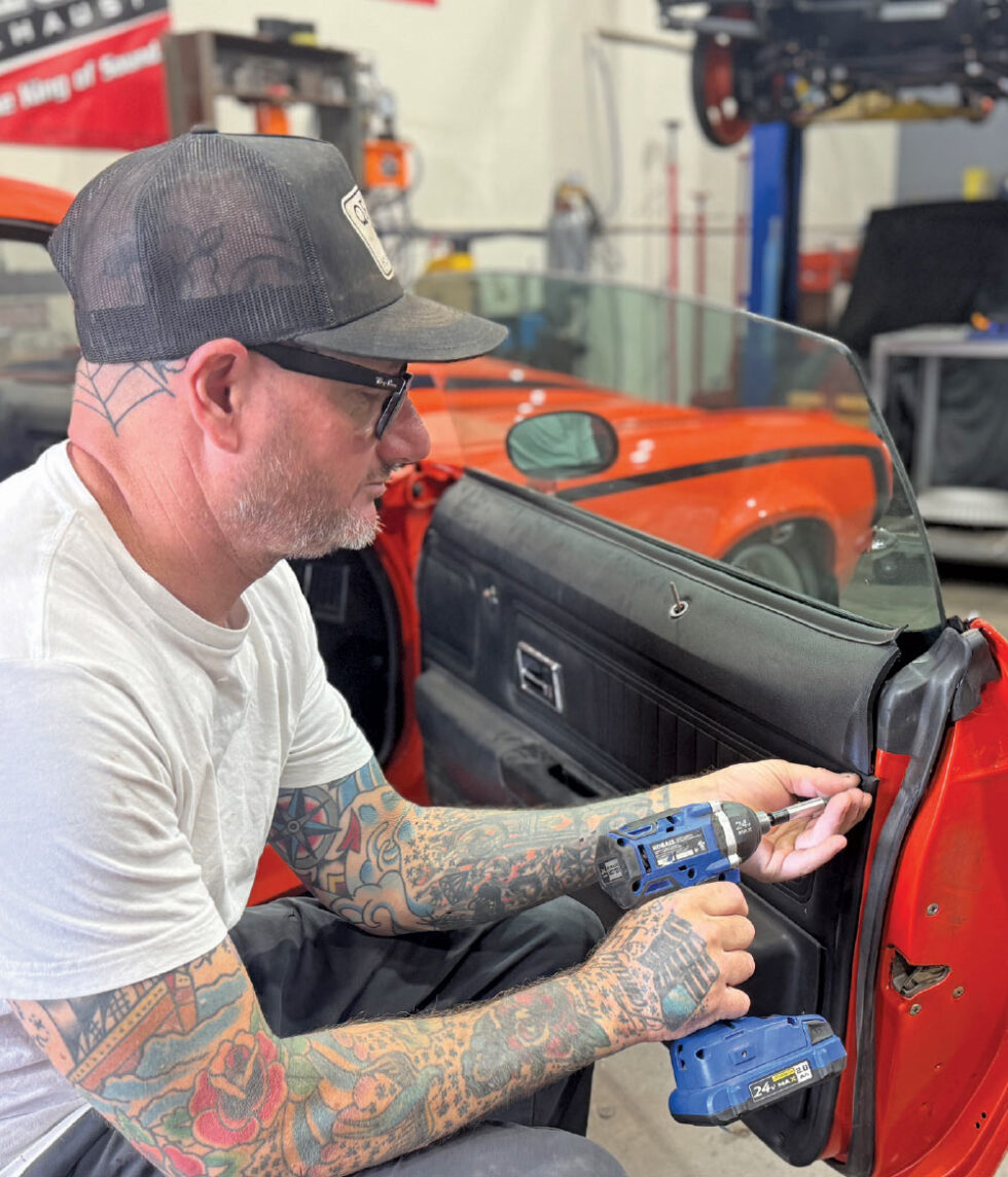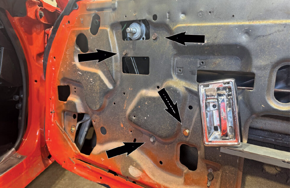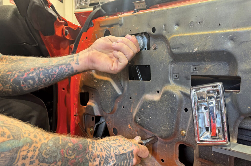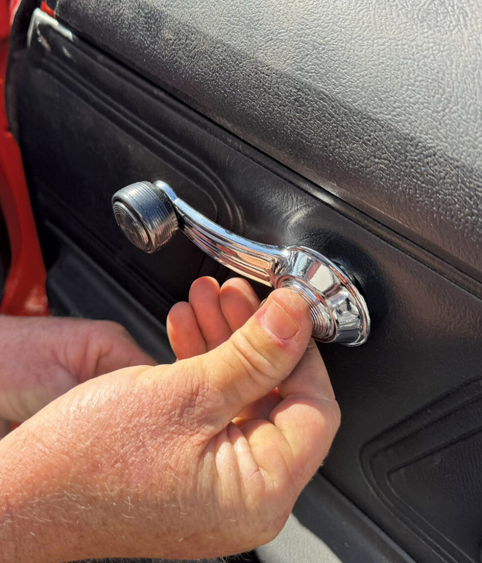 28-29. With that, Scudellari reassembles the door panel and tops it off with new window cranks from AMD. |