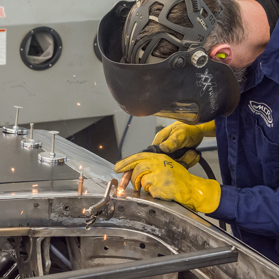 Spot welds were used where appropriate to maintain a factory-correct look. In areas where spot welding wasn’t possible, plug welding provided a strong alternative.