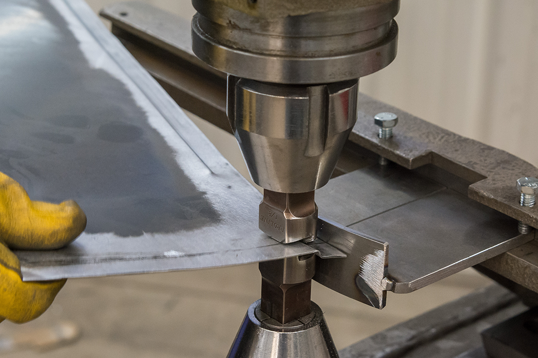 Once trimmed, the panel edge was reshaped using metal-forming equipment to recreate the stepped profile needed for proper alignment. Tools such as a Pullmax machine or bead roller allow shops to create factory-style contours while maintaining structural integrity.